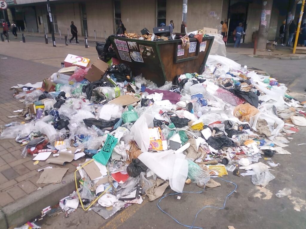 The next stop was Charlotte Maxeke street, and the passage leading to Middestad was filled with uncollected rubbish.