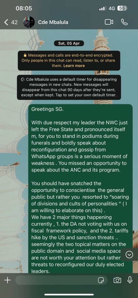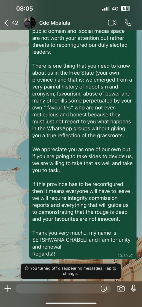 Below are WhatsApp texts Chabeli sent to Mbalula prior in April showing that she reached out to him first.