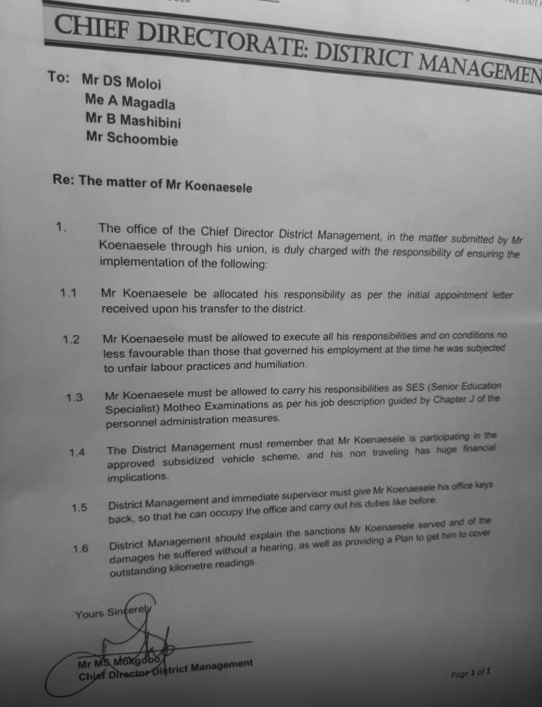 1 thought on “Education department sack top performing district director to please SADTU”