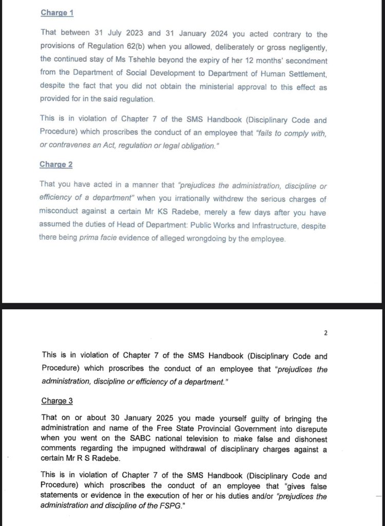 Bloemfontein – State Attorney’s Adv E. Baloyi-Mere SC has recommended dismissal in the disciplinary proceedings against Mosa Masemene, head of department at Human Settlements.