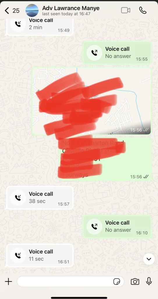 Later, Masemene sent Manye her physical address and again, at this stage, it is not clear if why she sent him her physical address and whether he came.