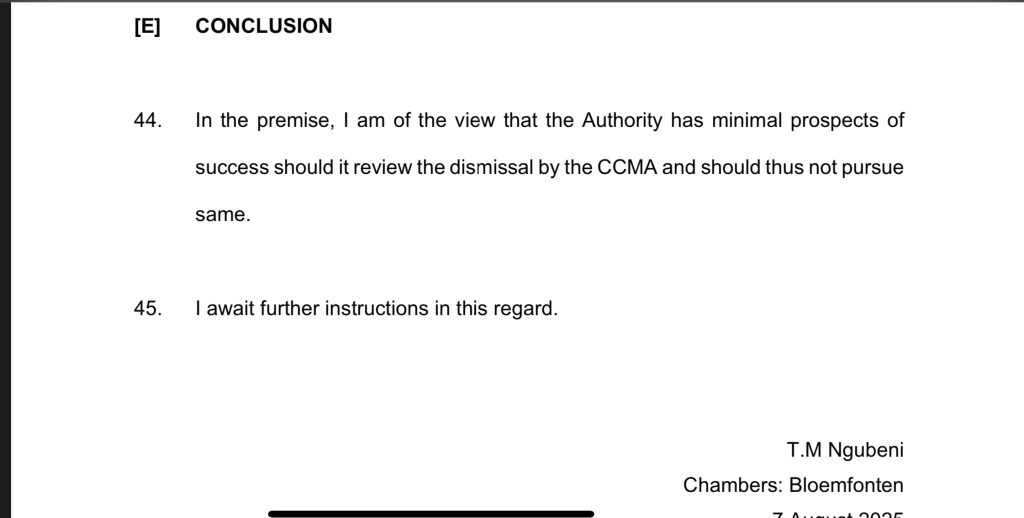 A letter dated 30 September 2025, from Reuben Maleka sent to Obakeng Seseane, acting CEO, Jack Tladi, Board chair, Ganyani Chauke, acting Deputy State Attorney, and Duma Skosana, Chief Financial Officer (CFO) sets the tone of what action the association is to take.