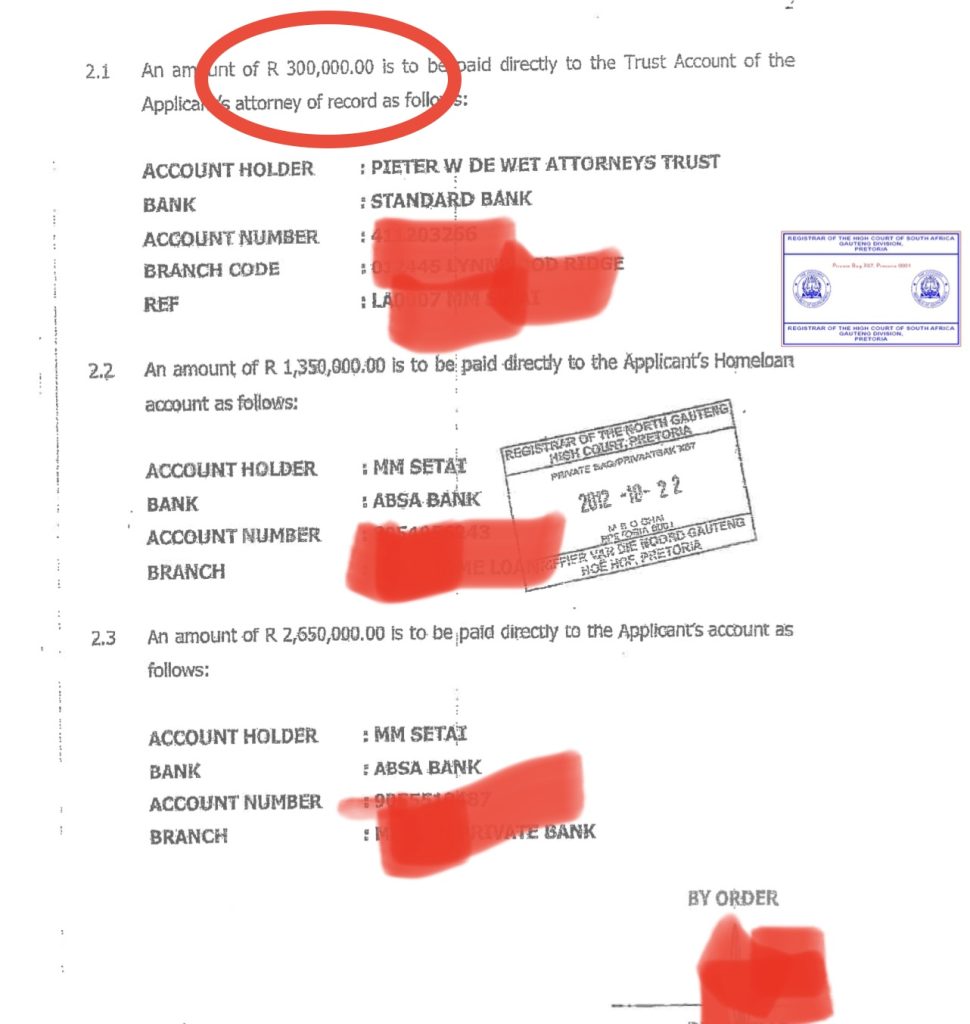 What is also of interest is how in 2012 legal fees were R800 000 and the payment structure.