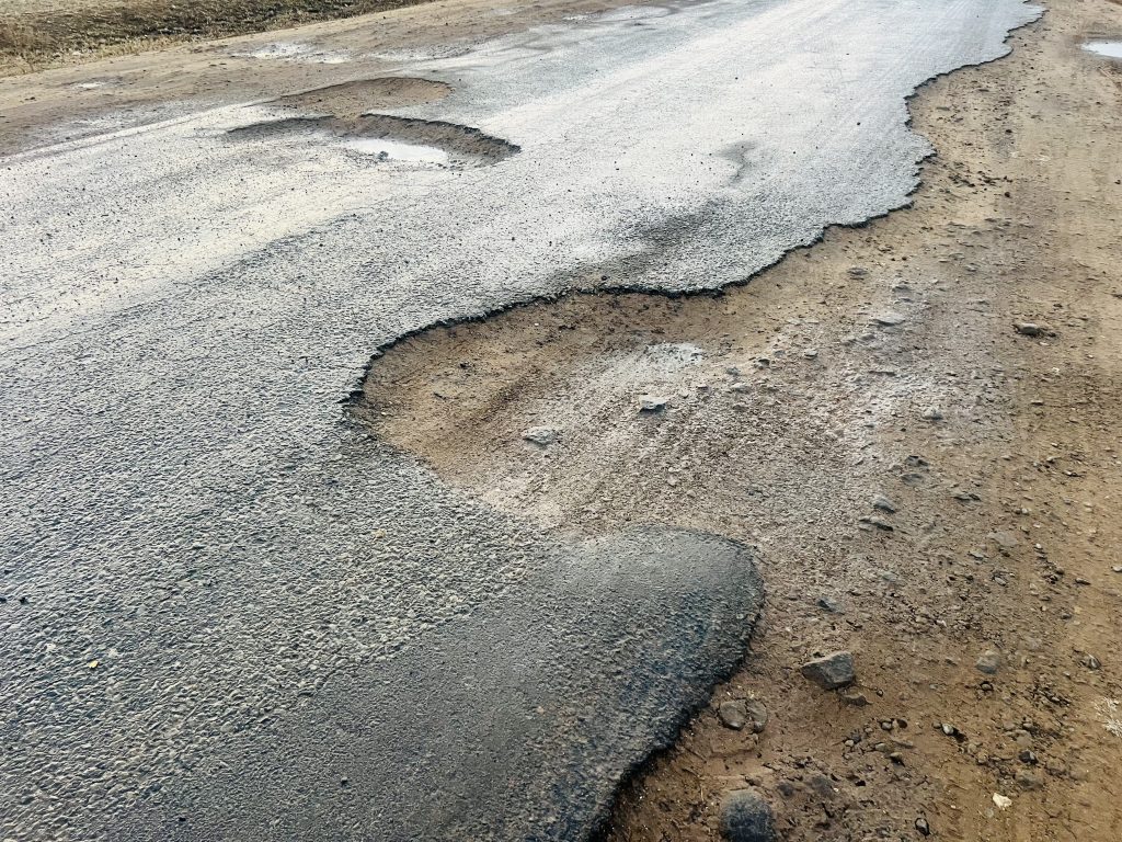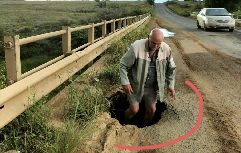 Clocolan – The conditions on R708 between Marquard and Clocolan have moved from death traps (potholes) to gravesites (sinkholes) with a speed of a lightening.