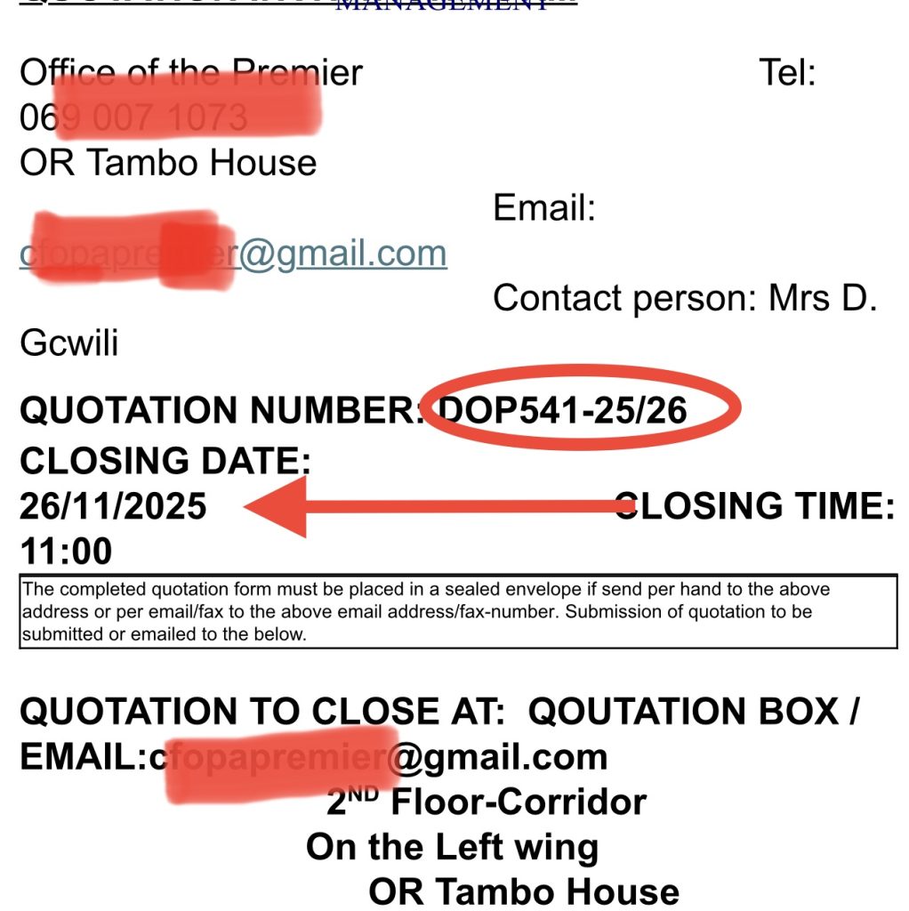 According to the RFQ sent on Saturday, the deadline for quotes is 26 November 2025, which is tomorrow, however the venue has been decided.