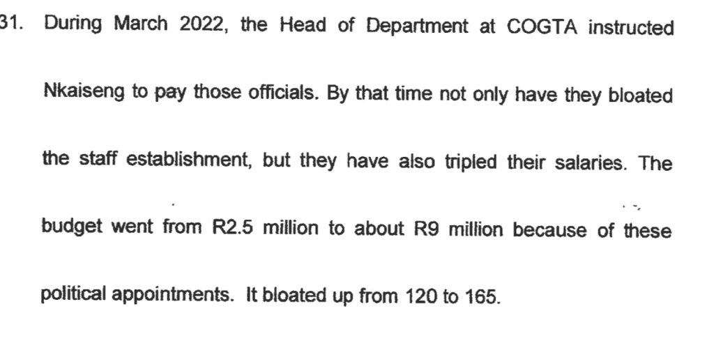 Former COGTA Head of Department Mokete Duma, who is now employed by the municipality is also implicated having instructed Nkadimeng to pay.
