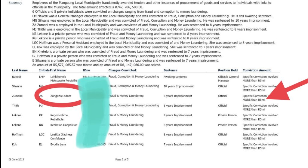 Zumane was convicted of fraud in 2012 and sentenced to eight years’ direct imprisonment.